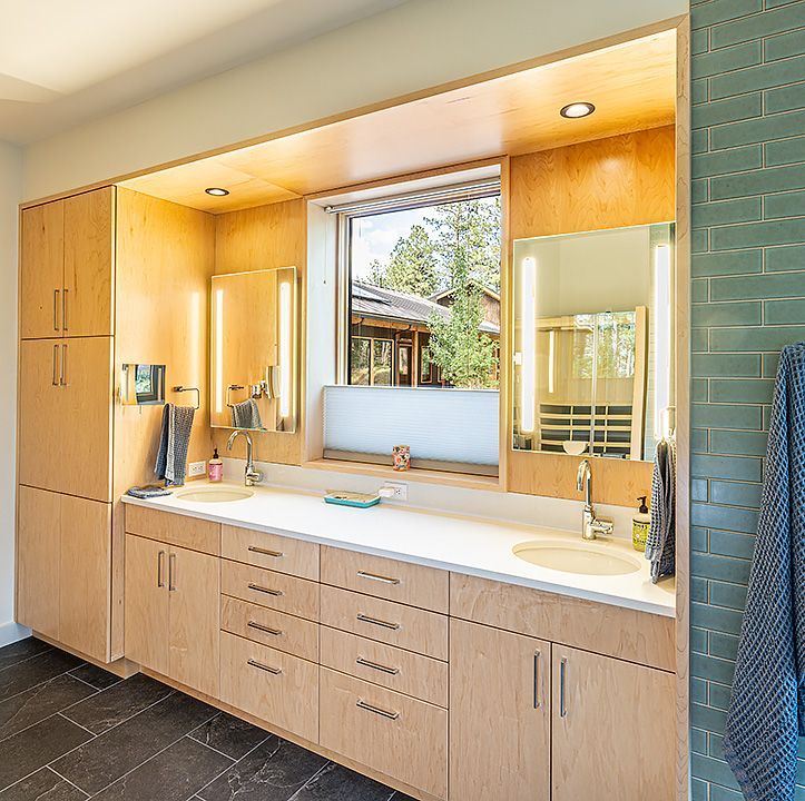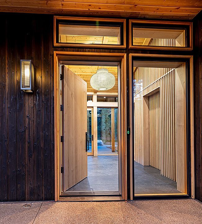 Nestled in mature Ponderosa Pines in the Falls Creek Subdivision west of downtown Durango, one main goal of the project was to incorporate this home into its surroundings. This exceptional property offers a rich, warm feel from the beautiful balance of contemporary woodworking and pops of bold color throughout. The homeowners and the Mantell-Hecathorn Builders’ Team worked closely with Architect Tom Bauer, Bauer Architecture to create a spatially efficient design featuring the kitchen, the primary suite, the library, and yoga space on the main living level. The homeowners were extremely hands-on with the design elements of this home, incorporating modern mid-century design elements and Korean inspired touches that complement the clean lines of the interior. The open layout provides for comfortable common areas and a beautiful outdoor living space, making this home perfect for entertaining and gatherings. The level of craftsmanship from the interior to the exterior is unparalleled, with custom pieces throughout the home. This home features 22 solar panels for its 8.8 kW system, which generates almost enough power to run the entire home without any propane or need for additional electrical source. As with all MHB homes, it was third party certified to the DOE ZERH standard and earned an impressive HERS score of -2.