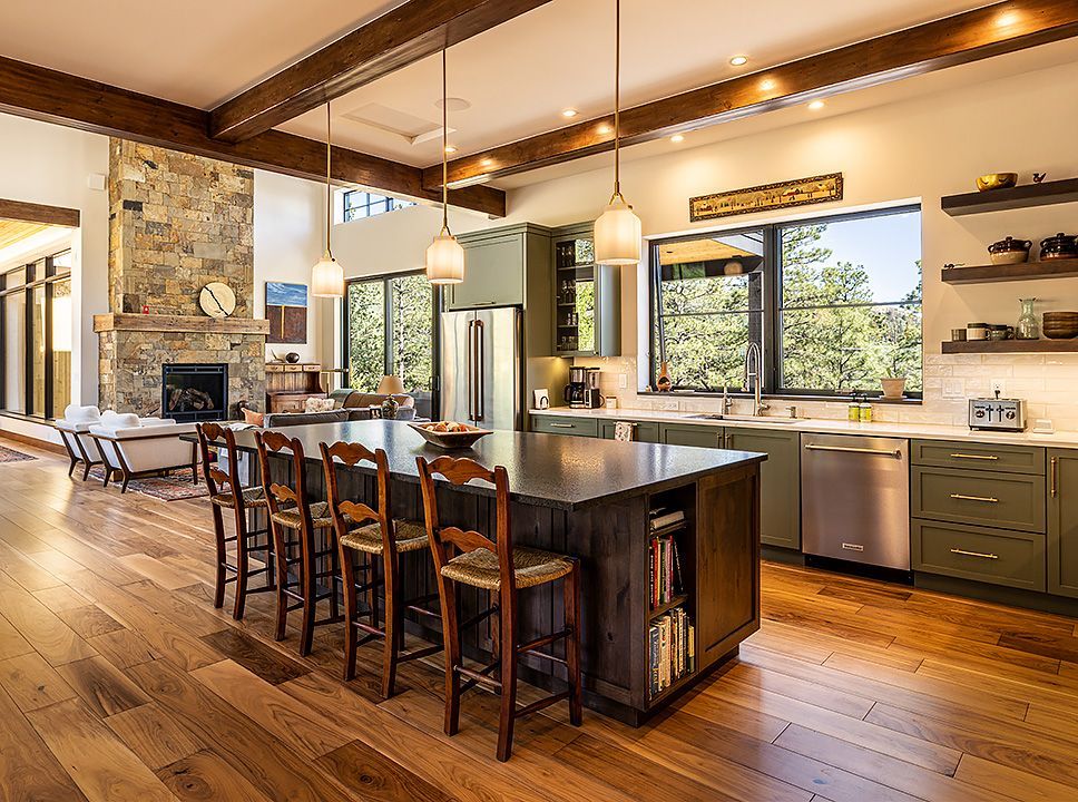 This beautiful home located East of Durango in the wooded neighborhood of the Timbers at Edgemont Highlands, was designed by Brian Huff, Huff Architecture with privacy in mind. The main-level features a primary suite, library, and living areas, while the second level has 3 guest rooms, each equipped with its own ensuite bath- making this a perfect family home with a space for everyone. As with all MHB homes, skillful design, high quality materials, high performance home equipment, expert craftsmanship and professional tradesmen work together to create a home that is not only beautiful but functions seamlessly. This home is 92% more energy efficient than a standard home built to code. The double wall construction, high R-value insulation and Kobe Triple Pane windows create a year-round comfort in the varying temperatures of the Southwestern Colorado climate. The mechanics of the home were engineered to integrate energy-efficient systems to guarantee that this home performs at its best for years to come, there is durability for generations. The Zehnder whole-house ventilation system ensures healthy indoor air quality and 8.36kW Solar System keeps all systems running with minimal utility costs.