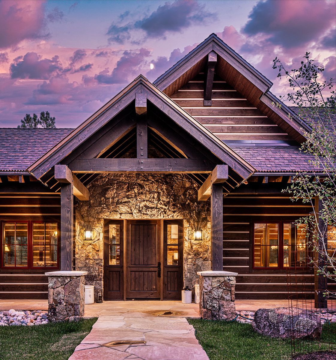 The result is an exquisite design which evokes thoughts of a Timber frame lodge high in the mountains of Montana. The exterior combination of full veneer stone wood wide plank-chinked siding gives the house a handsome look. Triple pane windows make sure the home stays warm in the Winter and cool in the Summer.